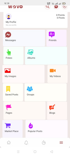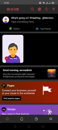 The app includes the most important website features of Wovo, such as writing on timelines, liking photos, searching for people, and editing your profile and groups.