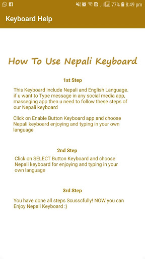 3: Click on select button of nepali keyboard and after selecting you can enjoy nepali keyboard