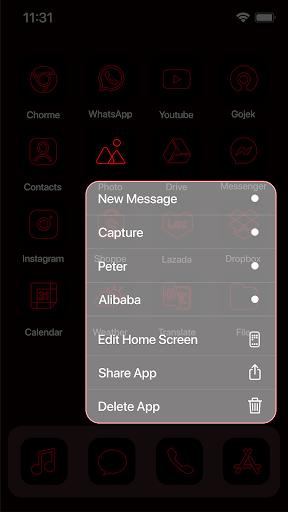 - Red Neon theme style lock screen and notification center interface, making your phone different and more colorful