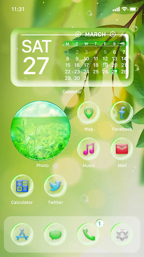 - Supports three widgets: calendar, photo, clock and more designed in water theme style