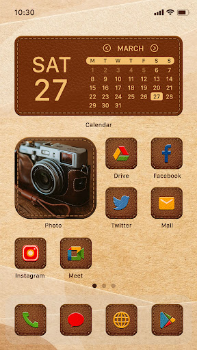 - Supports three widgets: calendar, photo, clock and more designed in leathery theme style