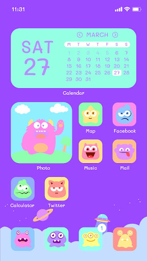 Wow Monster Theme - Icon Pack is a theme that changes the whole style of your phone, fresh, stylish, cute and personality. It includes icon packs, widgets, matching home wallpaper, lock screen wallpaper and more