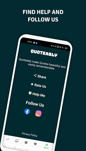 Quoteably shares the most important life-changing inspirational quotes in this world. You can create thousands of Beautiful, Amazing Picture Quotes for free. This is the best quotes creator app. The core purpose of Quoteably is to transform the lives of others utmost by giving the platform to read the world's most valuable and life-changing quotes in a more rememberable way through images. It is the most simple and best quotes creator app on the play store.