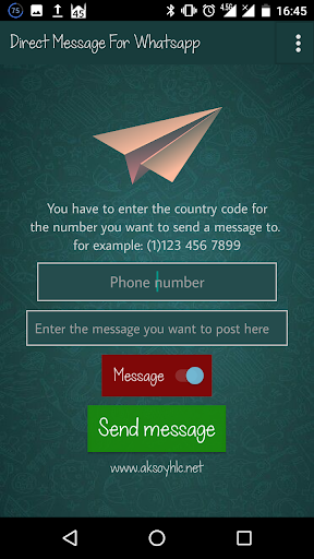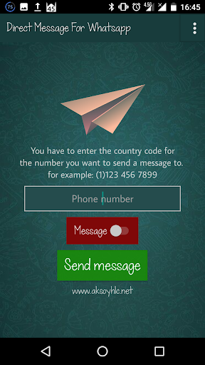As you know, whatsapptan, if you want to send a message to a person, you must first register it with your phonebook and then send messages. This process takes your time. We have developed this application so that you can send messages via Whatsapp to people who aren't registered in your contacts, so you don't spend time in vain.