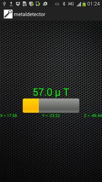 Metal Detector measures nearby electromagnetic fields using the phone's built-in magnetometer compass. The magnetic field level(EMF) in nature is about 30~60μT(microtesla) or 300~600mG(milligauss); 1μT = 10mG.