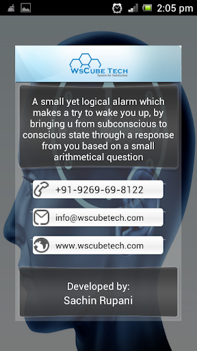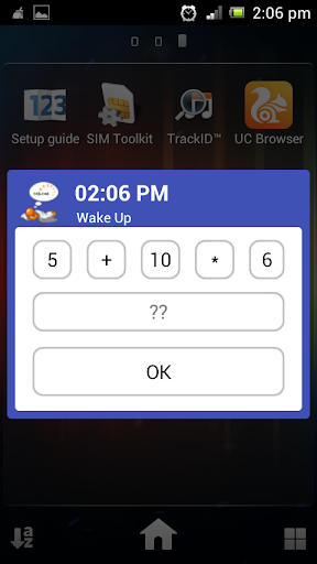 Secondly, the alarm doesn't disappear or is turned off until the user gives the answer of an arithmetical question, thus making sure the consciousness is achieved from the early morning laziness..