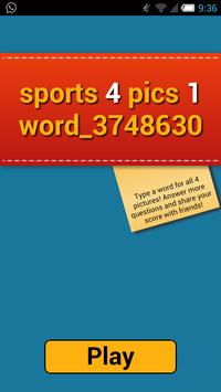 This is the 4 pics 1 word game for sports fans! Test your Knowledge about sports! A quiz about different sports which has easy and difficult Levels. Do you make it without buying any letters? Yes? Then you are very good!