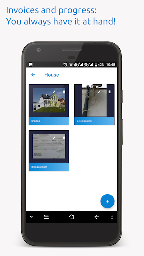 You have received an invoice in relation to your house construction? Just take a picture with the App and you always have the bill handy. You want to document the construction progress? Simply take a photo of the new roof with the camera on the App and you can access it any time in the App. You don't have to search long in the overfilled gallery of your smartphone.