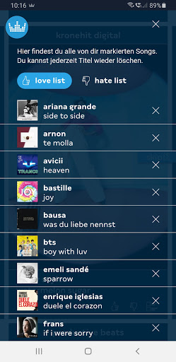 kronehit smart – „Das ist wie Tinder für die Ohren :-)“. Ein Hit gefällt dir nicht? Wisch ihn einfach weg. Du willst, dass ein Hit öfter läuft: Schenk deinem Lieblings-Star einen Daumen rauf! Ein Hit ist nicht so cool? Gib ihm den Daumen runter! Und du hörst in seltener.
