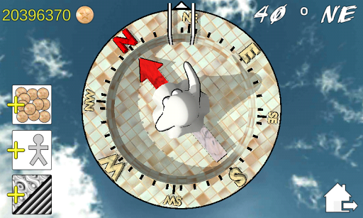 A little 3D Cartoon character is on the needle and he is pointing to the Magnetic North. You can unlock new characters and new textures for the compass to personalize it.