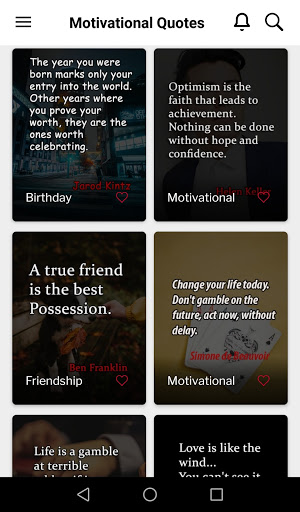 Motivation app provides you with only the best Motivation and Success Quotes for you to further help yourself to find more depth in the meaning of life. It is exactly what you need during self-motivation, just the right words and quotations on life that can really make you think more on life and purpose of life.