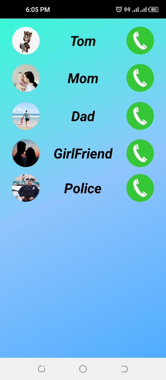 In this App You Can also make a custom Call, enter any name, number, and make a call which looks like a real incoming call from Someone.