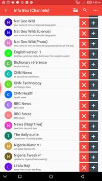This contains list of added channel... i.e those channel you added from InfoBox. OneNote has been added with some common NoteGroup, Example of which are News, Quote and so on... Any non-interesting channel can easily be deleted in the NoteGroup option.