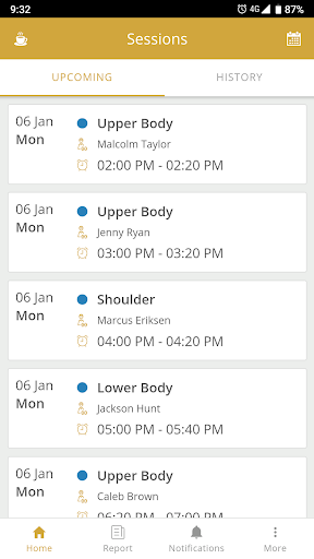 Trainers will be able to view their daily schedule and their sessions and keep track of their clients’ programs and number of sessions done and remaining.