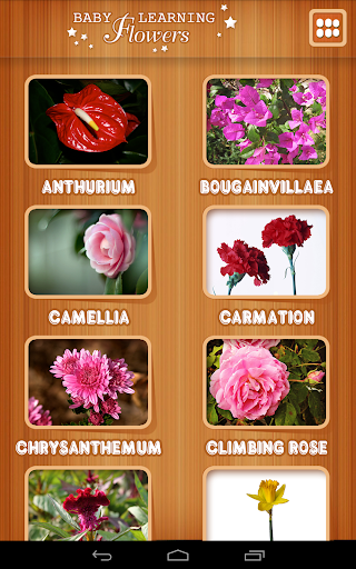 Baby learning Flowers is a flash card game, help your children learn & record many flowers. It includes the pictures, flower name's sounds. Baby can easy learning from the cards. It suitable for 0 - 5 years old baby. Compatible with most devices.