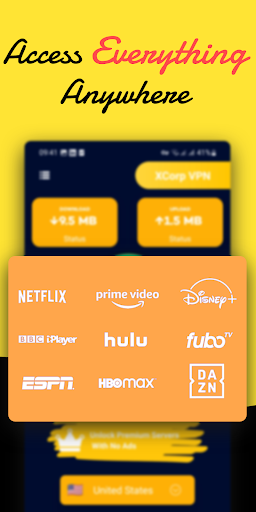 XCorp VPN delivers an array of impressive features, including an unlimited VPN experience without restrictions on session, speed, data, or bandwidth. Enjoy ultra-fast VPN connections with no ISP throttling or buffering, and choose between a free VPN or a premium, ad-free option on a monthly or annual subscription.