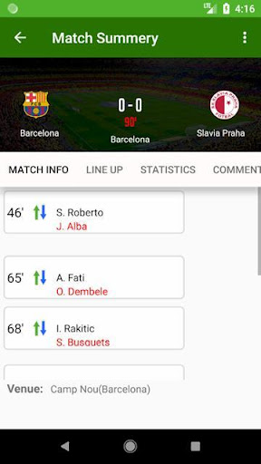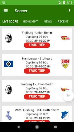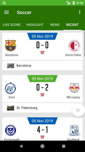- Recent: Xem lại kết quả match info, line up, statistics của trận đấu bóng đá.