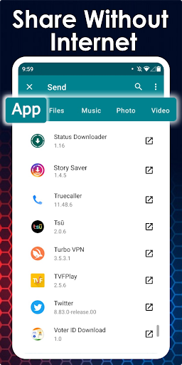 Xender file transfer Sharing photos, music, videos, apps, documents and any other file types of Unlimited file Size.
