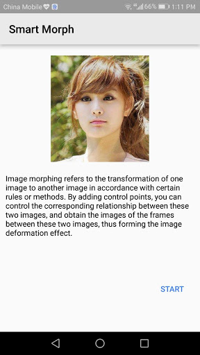 Morphing one image to another. With Smart Morph, you can: -morph your face to another face. -morph your face to animal -morph a person to an animal.