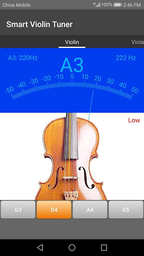 Select string in Smart Violin Tuner, then pluck and tune your violin, viola or cello string. When the pitch of your violin, viola or cello match that note. The color of the panel of Smart Violin Tuner will turn to green.
