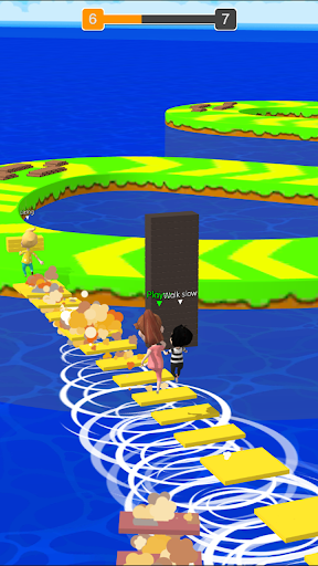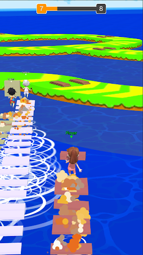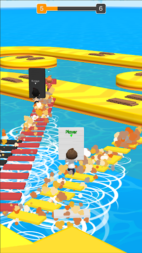"Shortcut Run Race" is a competitive game of bridge and parkour. Players pick up wooden bars on the map and stack them in their hands. When the player leaves the ground, lay the wooden slats under their feet and build a short bridge to quickly rush to the finish line to win the game.