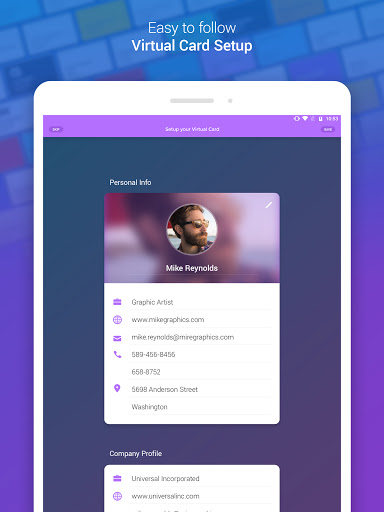 - Setup Virtual Business Card Details