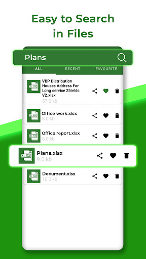 Important documents always need priority, so add your important documents into favorites and open it quickly. XLSX viewer: xls file viewer contains search bar for finding documents quickly. When phone contains many xlxs files, then it is difficult to find specific file, so you can find documents quickly with help of search bar.