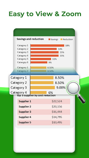 Contain a lot of spreadsheets and excel sheets in your phone? Need XLXS reader to open files? We developed this Xlsx File Reader with Xls file Viewer by which you view school sheets, attendance sheets, expense sheets etc. High quality view to open excel files. XLS File Reader & Xlsx Viewer app is very easy to use and it has very simple interface.