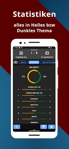 On the statistics page you can see ball possession, shots, fouls, and more.