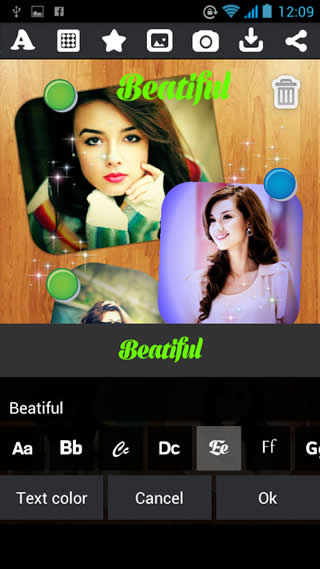* Add text, delete text, emoticons and clip art, many sticker to your photos and collages