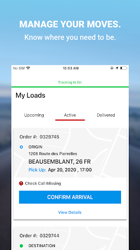-View upcoming and completed loads assigned to you