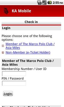 Use our free KA Mobile app to make travel easier: Check in online, check your flight status, retrieve your booking, log on to The Marco Polo Club, and view flight schedules