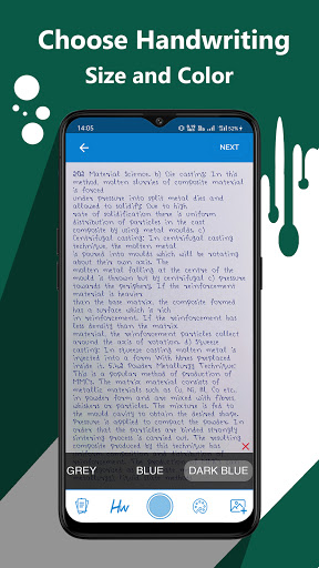 Primarily an assignment maker app, Handwriter is font converter app which uses image scanned/captured from camera, imported from gallery to convert it into text file. You can also directly choose a text file from your phone, type or copy/paste from internet. Save the text file and share with your friends. Add paper to your text background, select your desired handwriting. You can choose from multiple handwritten fonts. Type in handwriting keyboard. choose handwriting size and color. Add hand drawn diagrams in ink color. Capture it in form of images and export them as PDF.