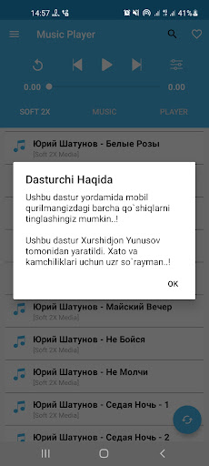 Ushbu dastur yordamida barcha turdagi Audio fayllarni mobil qurilmangizda tinglashingiz mumkin..!
