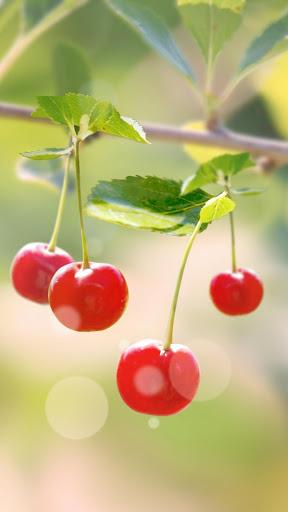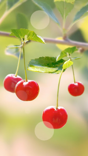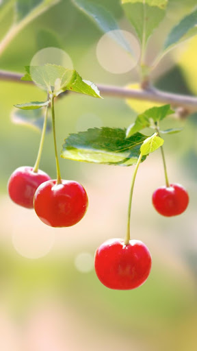 Sweet Cherry Live Wallpaper is a lovely work that presents a beautiful image of fresh sweet cherries hanging from the green branches of their trees. These ripe cherries look quite appetizing on the light green background. Touching them with your fingers, the cherries will start to swing slightly. And if you swipe your phone screen, you will also be able to create beautiful light spots.