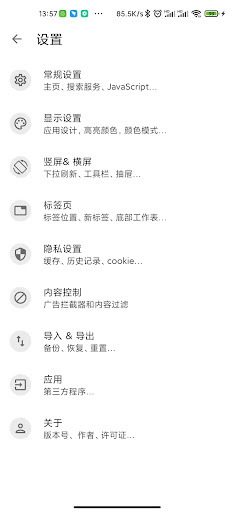 Lots of settings options to fine tune your browser to your liking. That includes configuration settings specific to your screen orientation.