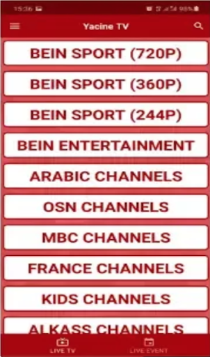 Yacine TV is the only one in the world of entertainment with a variety and fantastic featured APK. you can enjoy different French and Arabic Yacine TV channels on your mobile. Yacine TV app is free and no registration is required to use it.