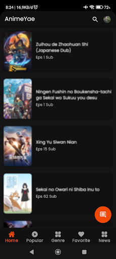AnimeYae is a free application for watching anime with subtitles online with a large film database and full HD image quality.