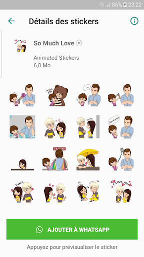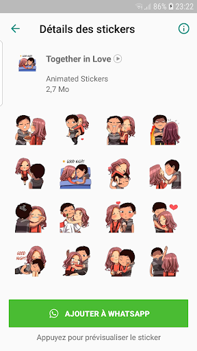 Animated love stickers, the app has a huge collection of romantic stickers which are the best combination of love stickers with sweet feelings of words and hearts.