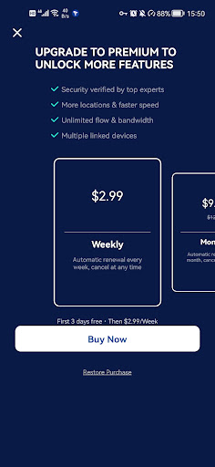◆ 1-Week Plan, first 3 days free and then $2.99/Week