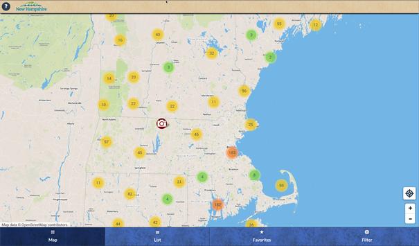 Use our map-based app to explore Connecticut, Maine, Massachusetts, New Hampshire, Rhode Island, and Vermont.