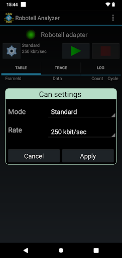 Robotell is China USB-CAN adapter. The application allow you to use your mobile device for monitoring data activity on CAN bus via Robotell USB-CAN adapter.
