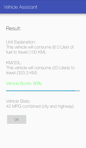 the application will compare your Avg. to the published results from the site https://www.fueleconomy.gov and show a score that tells how close your Avg. to the published one.