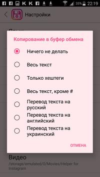 Helper for Instagram это уникальное приложение, которое даст вам возможность не только сохранить фотографии и видео из Instagram, но и описания к контенту, и что самое интересное - автоматически перевести скопированный текст на нужный вам язык.