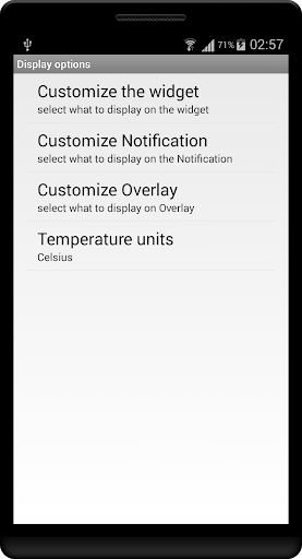 ■ upgrading to the pro version will enable some more features. Using the pro version you will be able to choose the color and the size of the displayed text, enable the notification bar or enable an overlay display of the info shown on the widget