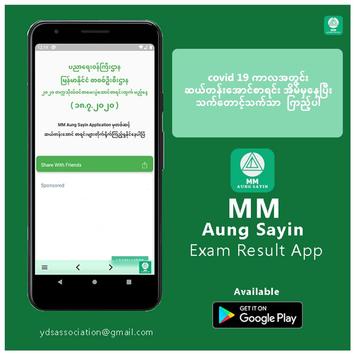 ၂၀၁၆ မှ ၂၀၂၀ အထိဆယ်တန်းအောင်စာရင်းများကို ဤ application တွင်တိုက်ရိုက်ကြည့်ရှုနိုင်ပါသည်။