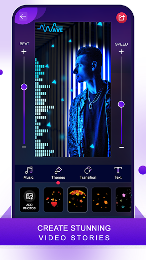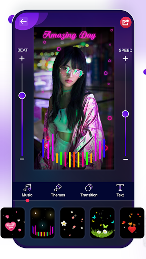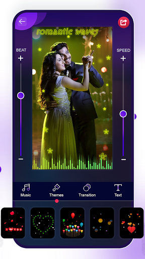 This app is a best music video editor app to share your creativity with others in one tap.You can create animated Photo Video Maker with Beat wise particles effects with your favorite song track.