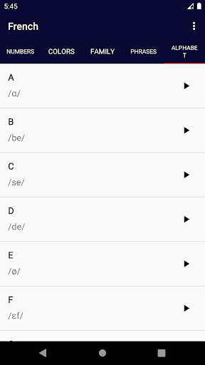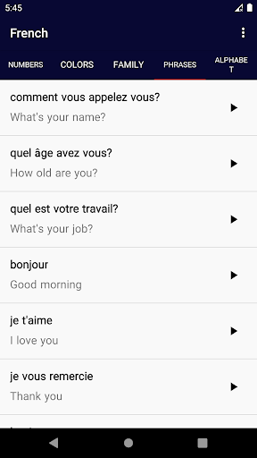 With French app, you can easily learn this language basics words. These phrases and words separated into four categories with their pronunciations and it's a good starting point to learn French.