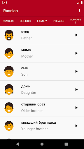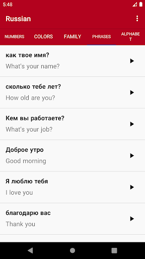 With Russian app, you can easily learn this language basics words. These phrases and words separated into four categories with their pronunciations and it's a good starting point to learn Russian.