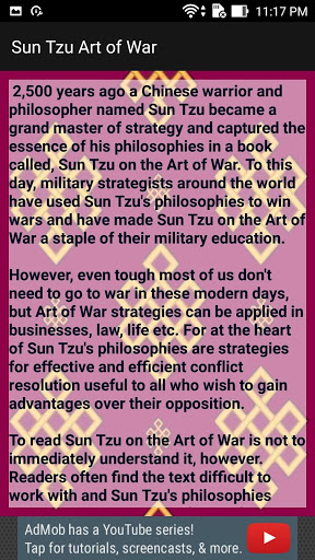Sun Tzu philosophy is life-changing. If you want to bring out the best in yourself, you should read this.